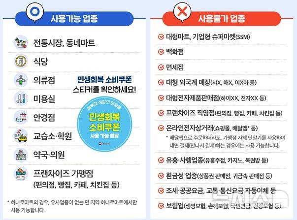 민생회복 소비쿠폰 사용 가능 및 불가 업종. (자료= 행정안전부 제공) photo@newsis.com