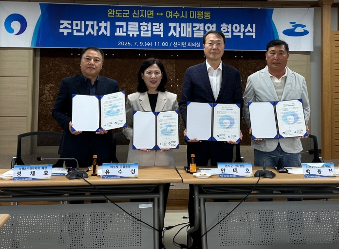 이날 협약식에는 유수성 미평동장, 안태호 신지면장, 정채호 미평동 주민자치회장, 박용진 신지면 주민자치위원회장을 비롯한 양 지역 관계자 60여 명이 참석했다.