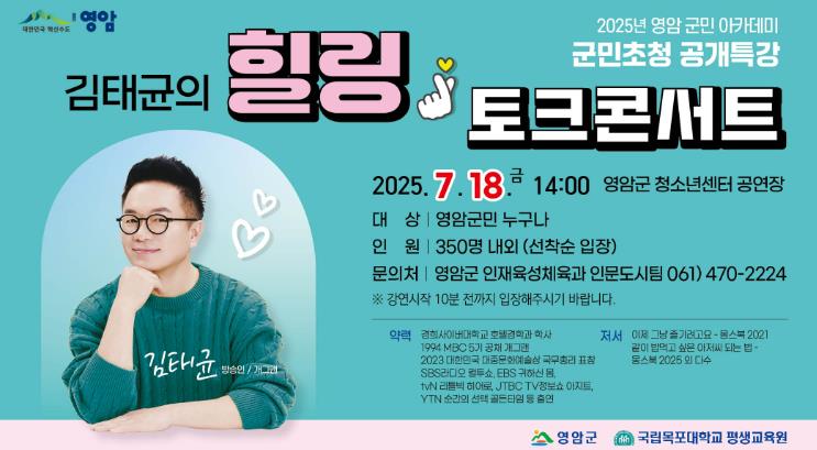 김태균 씨의 유쾌한 에너지를 공유할 영암군민의 많은 관심과 참여 바란다”고 말했다.