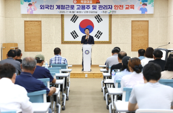 이날 교육은 최근 폭염경보 발효가 지속돼 외국인 계절근로자 온열질환 예방 수칙 및 안내 사항 등을 고용주에게 전달, 사전에 사고를 예방하기우;헤 올해 근로자 입국 중인 농가형 고용주와 공공형 인력중개센터 관리자를 대상으로 실시했다.