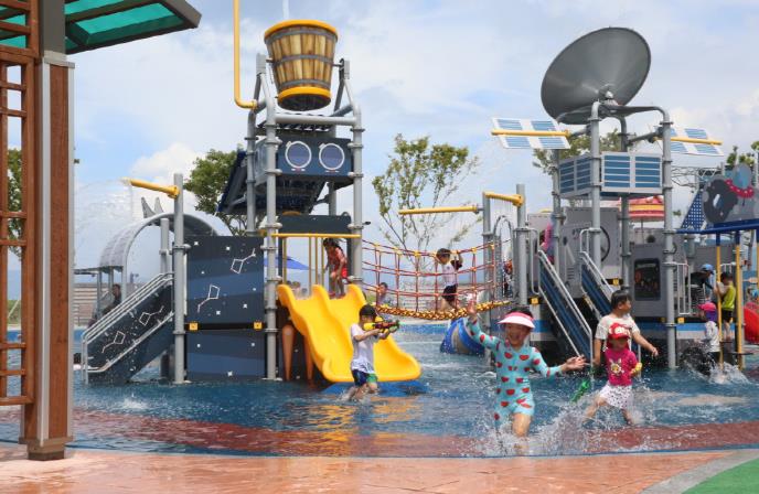 공원 내 물놀이장에는 테마가 있는 종합물놀이시설을 비롯해 워터드롭, 워터버킷 등 다양한 재미있는 시설들이 마련되어 있으며, 그늘막, 파라솔 등 휴식 공간도 갖춰져 있다.