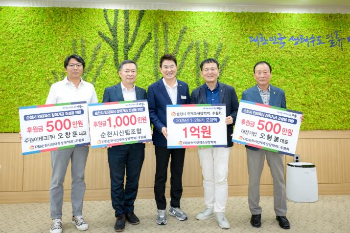 2001년 설립된 순천시인재육성장학회는 성적우수, 학력신장, 특기자, 다자녀, 청향, 희망드림, 국제교류, 플러스알파, 성인문해 등 다양한 분야에서 지금까지 총 3,943명에게 35억 9천만 원의 장학금을 지원했다.