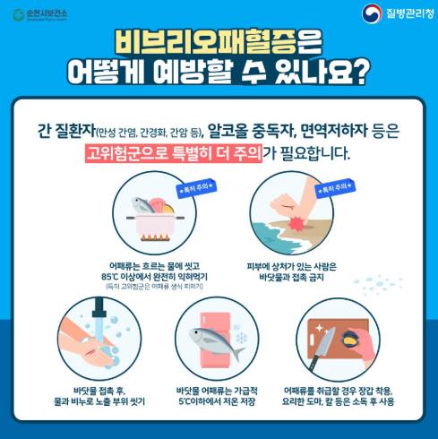 시 관계자는 “비브리오패혈증은 50% 내외로 높은 치명률을 보이는 만큼 예방 수칙을 철저히 준수해 주시길 바라며, 특히 해안지역 주민과 간질환이나 당뇨병 등 만성질환자, 면역결핍환자는 고위험군에 속하는 만큼 더욱 더 예방수칙을 지켜달라”고 당부했다.