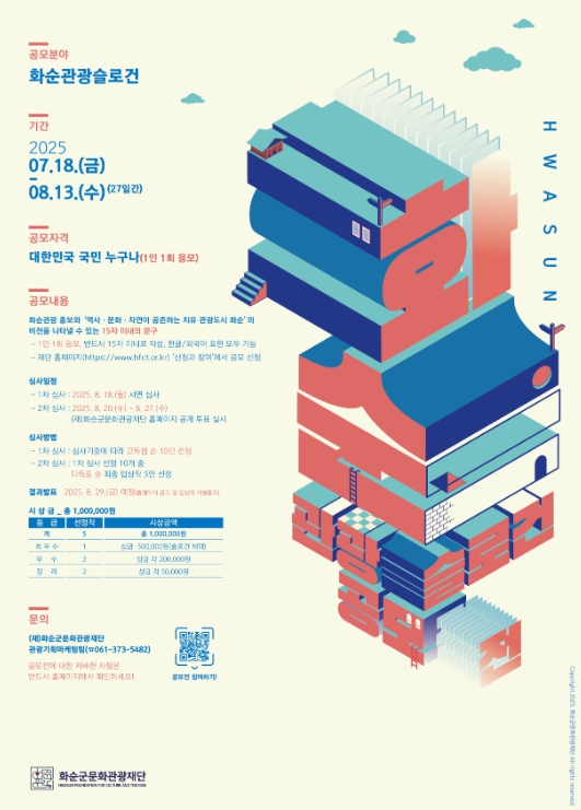 공모 주제는 화순 관광의 정체성과 지향성, 매력을 함축적으로 표현한 슬로건으로 군민과 국민이 함께 추구하고 공유할 수 있는 가치, 바람, 미래 지향점을 담은 문구다.