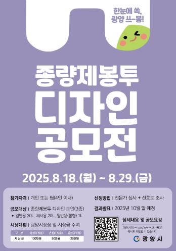 이번 공모전은 기존 디자인이 작은 글씨 위주로 구성돼 정보 전달력이 떨어진다는 시민 의견을 반영해, 종량제봉투의 가독성을 높이고 실용성과 심미성을 갖춘 새로운 디자인을 발굴하기 위해 마련됐다.