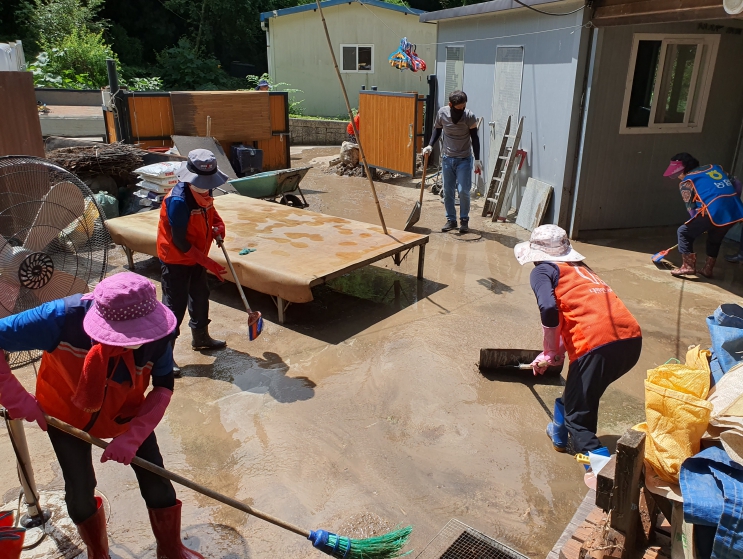 자원봉사자들은 폭염 속에서도 토사 제거, 침수 가옥 청소, 가재도구 정리 등의 작업에 힘을 보탰다.