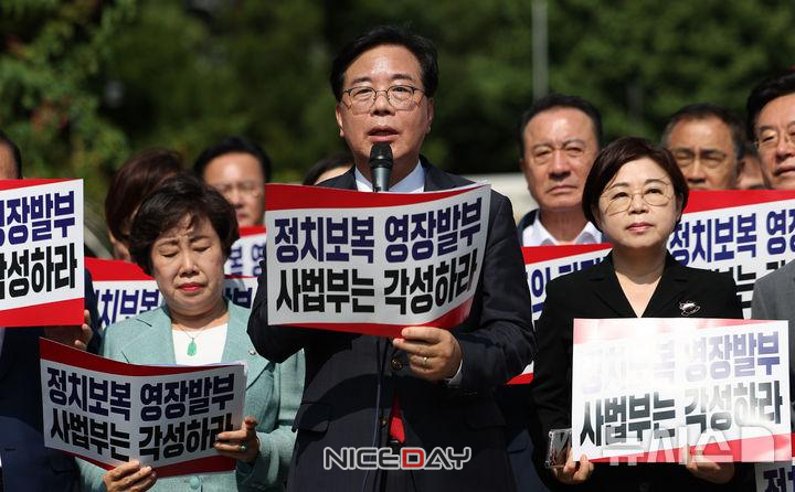 송 비대위원장은 "민중기 특검에서 국민의힘 당사 압수수색을 통해 사상 유례없이 당원명부를 강탈하려고 한다"며 "의원총회에서 절대 당원명부를 내줄 수 없다고 결의를 모았다"고 말했다.