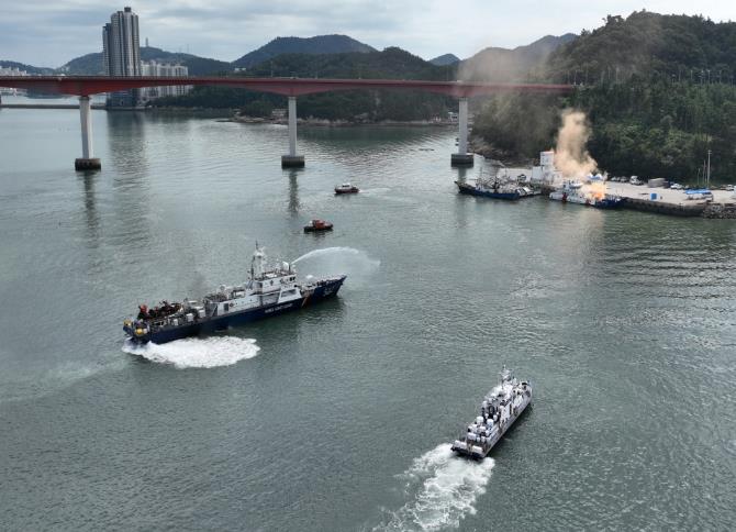 훈련은 지난해 청산도 남방에서 실제로 발생한 LNG운반선과 화물선 간 충돌 사고를 바탕으로 시나리오를 구성했으며 ▲물질정보 전파 및 물질탐지 ▲주민대피 및 통항선박 통제 ▲소화포이용 확산방지 ▲승선원 인명구조 ▲경계구역 설정 ▲사고선박 안전성 검사 ▲인체 및 장비 제독 등 일련의 과정이 실전처럼 진행됐다.