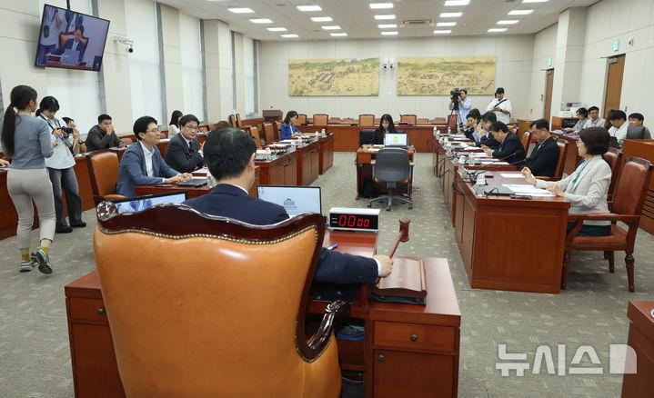 김영호 위원장은 "김지용 국민대 이사장은 이번에 안 나오면 네 번째 연속 불출석이다. 국회 사상 초유의 일"이라며 "대인 기피증이 있고 폐쇄 공포증이 있으면 이사장직을 그만 두고 요양하는 것이 맞다"고 말했다.
