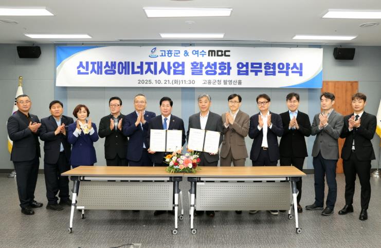 공영민 고흥군수는 “이번 협약을 통해 신재생에너지 보급과 주민 참여 확대에 큰 시너지가 기대된다”며 “여수MBC와의 긴밀한 협력을 바탕으로 지속 가능한 친환경 에너지 정책을 담대하게 추진해 나가겠다”고 말했다.