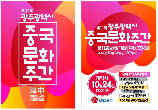 24일 오후 5시 광주차이나센터에서 열리는 개막식에는 강기정 시장을 비롯해 구징치 주광주중국총영사, 김병내 남구청장, 박상철 호남대 총장 등이 참석해 중국문화주간 선포를 함께 축하할 예정이다.