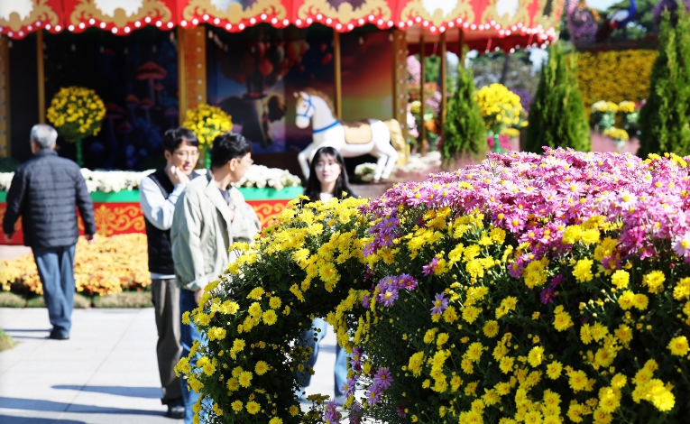 국화꽃이 만개한 중앙광장에는 수만 송이의 화단국과 분재국이 어우러져 장관을 이루며, 가족 단위 방문객과 연인, 친구들이 추억을 남길 수 있는 ‘인생샷 명소’로 큰 호응을 얻고 있다.