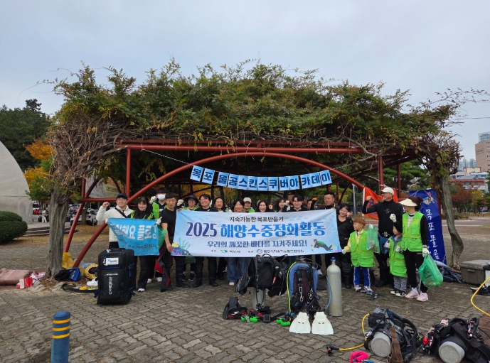 이번 정화활동에는 목포시지속가능발전협의회를 비롯해 물곰 스킨스쿠버 아카데미, 마을공동체 위드미플로깅 등 30여 명이 참여했다.