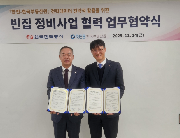 한전은 11월 14일 서울 한전 강남지사에서 한국부동산원과 '전력데이터를 활용한 빈집 정비사업 협력'을 위한 업무협약을 체결하고 본격적인 협력체계 구축에 들어갔다. 이번 협약은 국가 차원의 빈집 정비사업에 한전의 전력데이터를 접목해 실태조사의 신뢰도를 높이고 행정 효율성을 제고하기 위한 취지로 추진됐다.