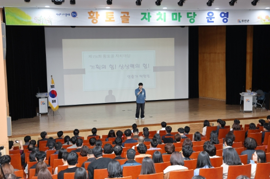 이번 황토골 자치마당은 국회의장 행사기획 자문관이자 목포대학교 특임교수인 탁현민 강사를 초청해 ‘기획의 힘, 상상력의 힘’을 주제로 진행됐으며, 창의적 행정 구현과 군민과의 공감소통을 위한 의미 있는 자리가 됐다.