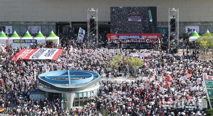 국민의힘은 22일 부산·울산을 시작으로, 경남 창원(23일), 경북 구미(25일), 충남 천안(26일), 대구(28일), 대전·충북 청주(29일), 강원 원주(30일), 인천(12월 1일), 경기 용인(12월 2일) 등에서 국민대회를 열 예정이다.