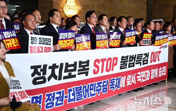 그는 "국민의힘은 민주당의 '특검 정치'를 단호히 거부하며 민생과 국가 운영을 정치 공세의 희생양으로 삼는 시도를 결코 용납하지 않겠다"며 "민주당의 특검 정치는 내년 지방선거에서 국민의 준엄한 심판을 받게 될 것"이라고 했다.