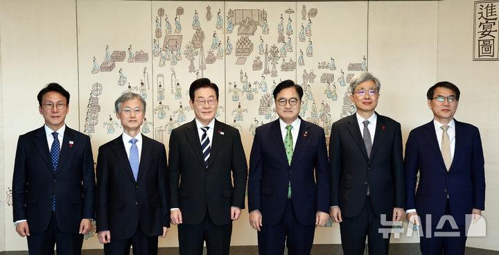 이 대통령은 "앞으로 허심탄회하게 국정운영 상황이나 각 기관 운영 어려움이나 현황들도 가끔씩 논의하고 그런 자리를 자주 하면 좋겠다"고 제안했다.