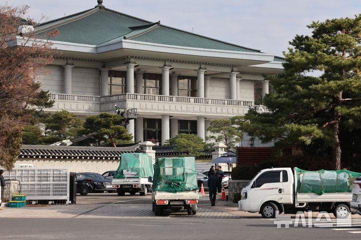 서울 종로구 청와대 시화문 앞에는 물품을 실은 트럭이 오갔으며 관계자들이 조경 작업을 하는 모습도 포착됐다.