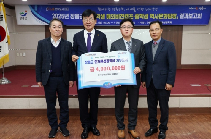 장흥군인재육성장학회 관계자는 “장흥의 미래 인재들이 고향을 사랑하고 사회 다양한 분야에서 활약할 수 있도록 지원하는 장학금 기탁에 깊은 감사의 마음을 전한다”며, “매년 지역 학생들을 위한 도움을 주시는 한국농어촌공사에 감사드리며, 기탁된 기금을 지역 인재 육성에 소중하게 활용하겠다”고 덧붙였다.