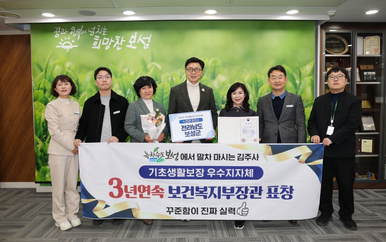 보성군은 “이번 수상은 군민 여러분의 신뢰와 현장에서 묵묵히 최선을 다해 온 직원들의 헌신이 함께 만들어 낸 결과”라며 “앞으로도 기초생활보장 제도를 더욱 내실 있게 운영해 군민 한 분 한 분이 체감할 수 있는 촘촘한 복지 행정을 펼쳐 나가겠다.”라고 말했다.