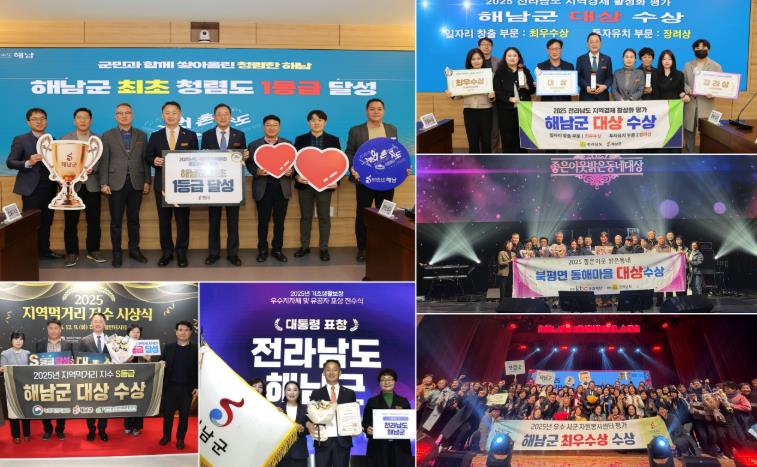 또한 보건복지부 주관 2025년 기초생활보장 지자체 평가에서 최고 영예인 대통령 표창을 수상했고, 좋은 이웃 밝은동네 대상, 우리동네 복지기동대 최우수상 등도 수상하며 따뜻하고 살기좋은 공동체 해남의 모습을 널리 알렸다.