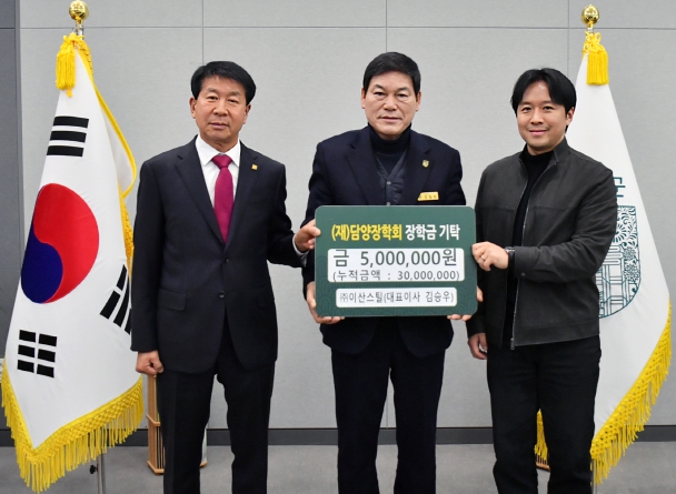담양군에 터를 잡고 기업을 운영하는 ㈜이산스틸과 ㈜고서삼화자원은 건설자재 판매 및 임대, 재생용 재료 수집·판매 등을 통해 지역경제 발전에 앞장서고 있으며, 매년 꾸준히 장학금을 기탁하며 나눔을 실천해오고 있다.