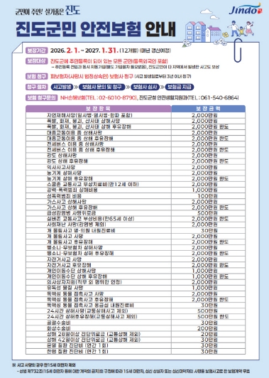 김희수 진도군수는 “앞으로도 군민안전보험과 같이 군민이 체감할 수 있는 안전 정책을 지속적으로 추진하겠다”라고 말했다.