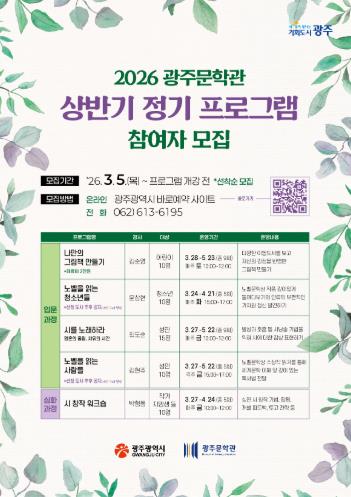 수강 신청은 5일부터 광주문학관 누리집과 전화 접수를 통해 강좌별로 선착순 모집한다.