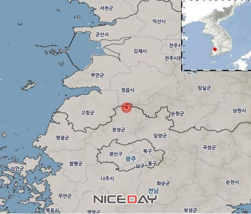 한편 이날 오전 0시51분께 전남 장성군 북쪽 18㎞ 지역에서 2.4 규모의 지진이 발생했다. 진원지는 북위 35.46도, 동경 126.81도, 발생 깊이는 7㎞로 측정됐으며 지진계에 기록된 최대진도는 전남 Ⅳ(4), 전북 Ⅲ(3), 광주 Ⅰ(1)다.