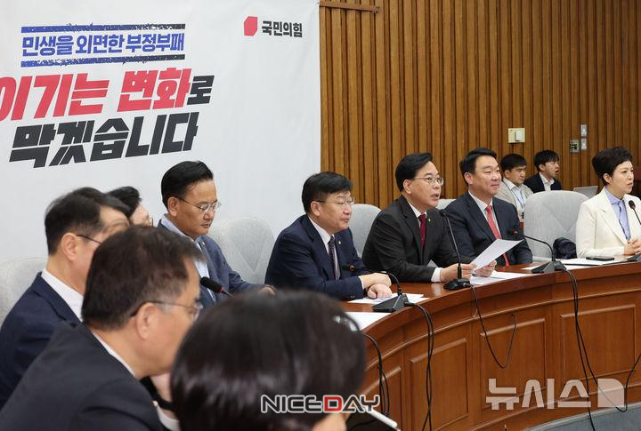정점식 정책위의장은 "우 의장이 제시하는 개헌은 핵심 과제가 빠졌다. 핵심이 아닌 일부 내용만 처리하겠다는 것은 국민적 요구에 기반한 것이 아니라 우 의장의 정치적 성과를 위한 선택형 개헌"이라고 했다.