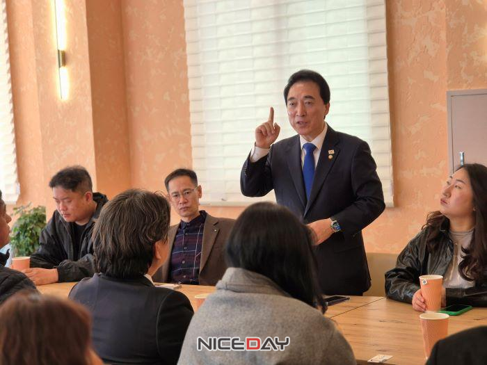 지지자 및 당원 간담회에서 “의자가 모자랄 정도로 많이 와주신 여러분의 성원에 감사드린다”고 인사한 박수현 출마예정자는 “5극 3특의 설계자로서 행정통합의 불씨를 살리고, 충남의 새 시대를 열기 위해 출마했다”며 “하루가 늦으면 1년이 늦는 AI시대에는 관리형의 도정보다 새로운 시선으로 변화를 이끌어야 한다”고 말했다.