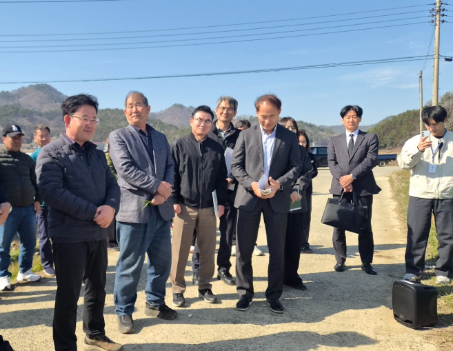 방문 현장은 기능성 보리 베타헬스 재배단지로 2026년 맥류 생산·가공 활성화 시범사업 대상지로 선정된 곳으로, 농업회사법인 오가닉팜(대표 오관수)을 비롯한 23농가가 참여하여 사업을 진행하고 있다.