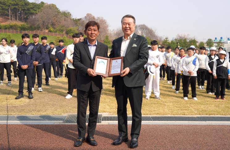 이번 감사패 전달식은 27일 광주국제양궁장에서 진행됐으며, 제55회 전국소년체육대회 예선 대회에 참가한 임원과 선수 등 관계자들이 참석하여 자리를 빛냈다.