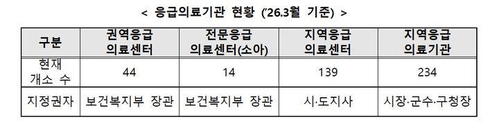 이중규 공공보건정책관은 "이번 응급의료기관 재지정은 중증도 중심의 응급의료 전달 체계를 구축하고, 중증환자에 대한 각 응급의료기관의 대응 역량을 높이는 계기가 될 것"이라고 밝혔다.