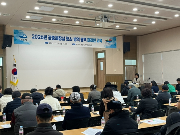 현장교육은 4월 23일 진행되며, 5개 용역 청소업체 소속 청소관리인이 참여한다. 한국화장실협회 전문강사를 초청해 전문성과 실효성을 높일 예정이다.