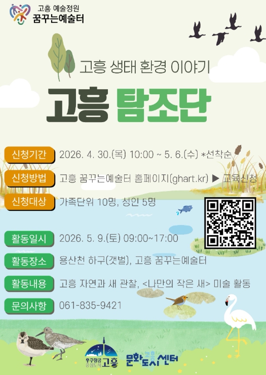 신청은 오는 4월 30일부터 고흥 꿈꾸는예술터 누리집을 통해 할 수 있으며, 선착순으로 15명을 모집한다.