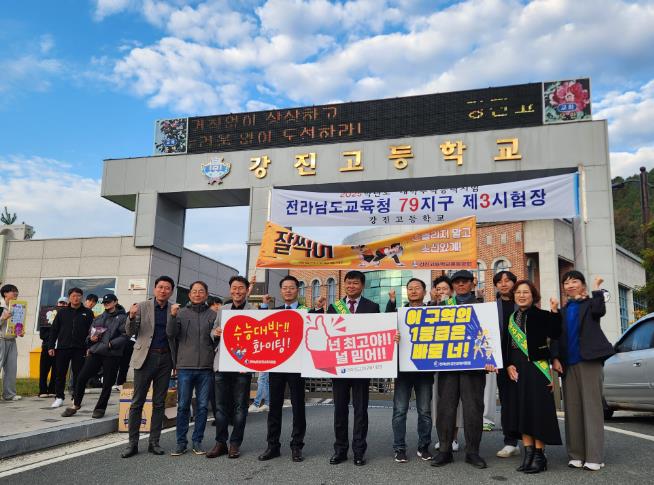 시험장 입구에서는 강진 부군수뿐 아니라 강진교육지원청, 강진경찰서 및 강진고 재학생들이 함께 모여, 이날을 위해 고생하고 노력해 온 수험생들을 위해 열렬히 응원했다.