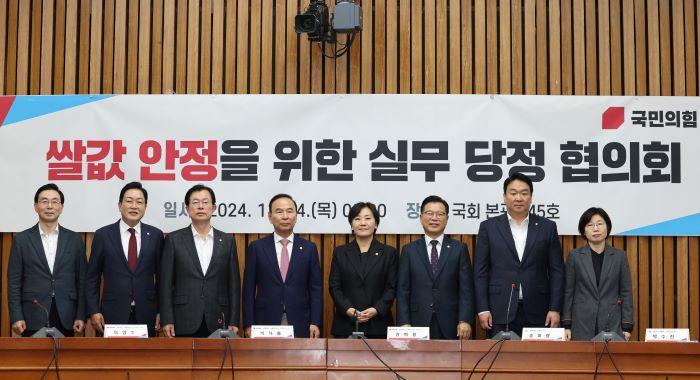 정 의원은 실무 당정 직후 기자들과 만나 "통계청에서 15일 (쌀) 최종 생산량을 발표할 예정이다. 쌀값도 현지에서 조사할 예정"이라고 전했다.