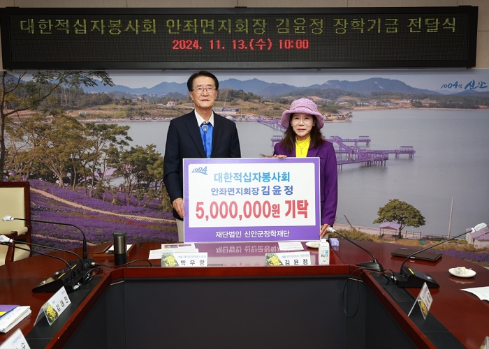 평소 투철한 사명감을 가지고 봉사와 선행을 실천으로 옮기고 있는 김윤정 회장은 장학기금을 전달하며, “금액이 약소해 도움이 될 수 있을까라는 생각도 들지만 지역의 후배들이 걱정 없이 학업에 전진했으면 좋겠고, 신안을 이끌 인재로 성장했으면 좋겠다”라고 기탁 소감을 밝혔다.