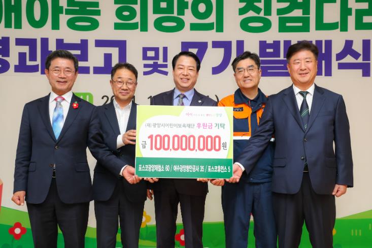 광양시육아종합지원센터 대강당에서 열린 이날 행사에는 정인화 광양시장, 최대원 시의회 의장, 이광용 어린이보육재단 이사장, 정상경 포스코 광양제철소 행정부소장, 박성현 여수광양항만공사 사장, 김형욱 포스코휴먼스 CS지원1실장, 어린이집 관계자, 학부모 등 80여 명이 참석했다.