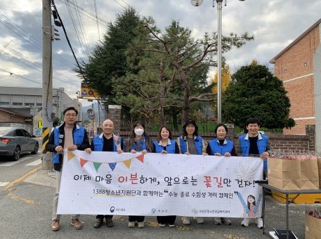 '이제 마음 이븐하게, 앞으로는 꽃길만 걷자!'라는 슬로건 아래 진행된 이번 캠페인에는 1388청소년지원단과 청소년유해환경감시단이 함께 참여했다. 수능을 마치고 학교를 나서는 수험생들에게 장미꽃을 전달하며 따뜻한 격려와 응원의 메시지를 전했다.