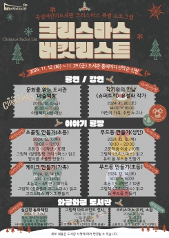 이 밖에도 어린이 가족을 대상으로 하는 5면형 가상현실 독서체험 △실감형 동화체험 '4차원 공룡세계 탈출 대작전'을 특별 운영하며, △이연주 작가 그림책 '산타와 함께 춤을' 아트프린트 전시 △소원 이루어주는 나무, 크리스마스 트리에 소원 카드를 매달고 도서관 설문조사에 참여하면 즉석사진을 찍어주는 이벤트를 진행한다.