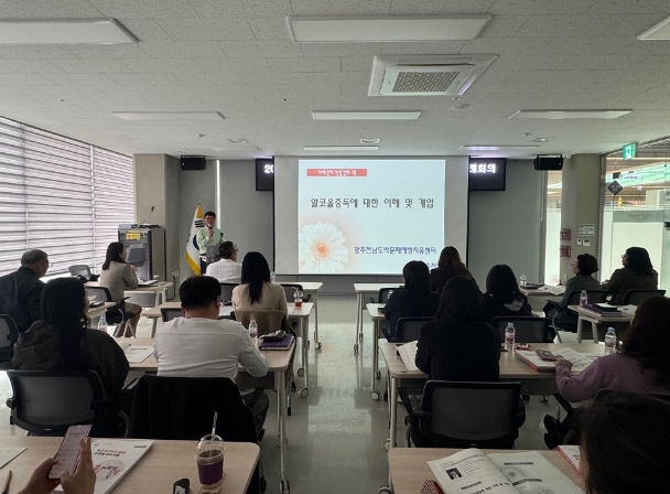 이번 교육은 광주전남 도박문제 예방치유센터 문승천 센터장이 알코올 중독에 대한 이해와 중독 관련 대상자들을 어떻게 응대하며, 중독 문제를 어떤 방법으로 같이 해결할 수 있을지에 대해 강의했다.