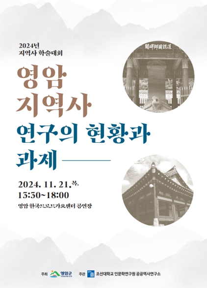 천선행 조선대 교수의 ‘영암지역 선사문화의 분포와 전개’, 손성필 조선대 교수의 ‘고려·조선시대 영암 도갑사의 역사와 위상’, 권수용 한국학호남진흥원 수석연구원의 ‘영암지역 향약자료와 그 특징’, 최은진 한국외대 교수의 ‘일제하 전남 영암 영보정 사건과 지역사회’, 노영기 조선대 교수의 ‘해방 후 영암지역의 변화와 학살’ 순으로 발표된다.