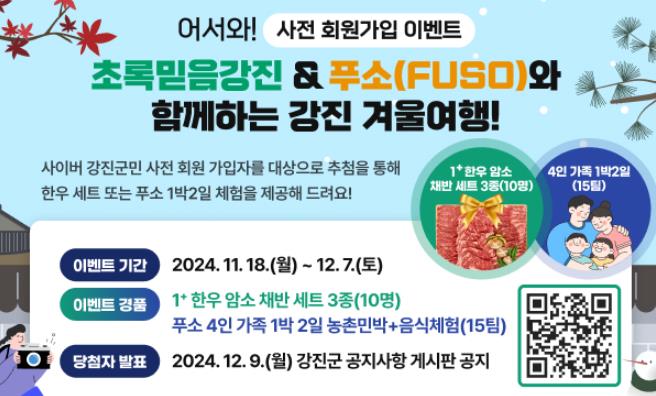 이벤트 당첨자는 12월 9일 강진군 홈페이지 공지사항 게시판을 통해 발표된다.