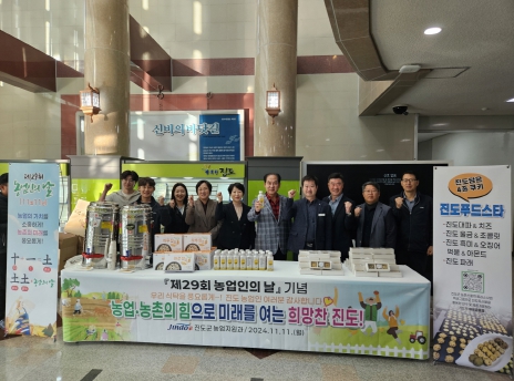 이날 기념행사에서는 진도 쌀을 가공해서 만든 쿠키 3종과 진도 울금 식혜, 진도에서 재배한 친환경 잡곡을 직원들에게 홍보하고 나눔 행사를 진행했다.
