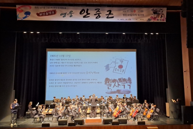 이번 공연은 뮤지컬 영화인 “영웅 안중근”의 스토리와 음악을 각색하여 만든 음악극 형식으로 전개 됐으며, 드보르작, 멘델스존의 교향악곡과 애국가, 아리랑, 단지동맹, 장부가 등 여러 장르의 음악을 선보였다.