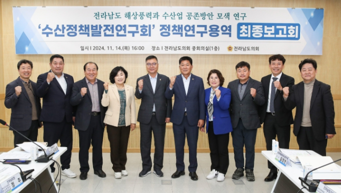 한편, 수산정책발전연구회는 최동익 의원(더불어민주당, 비례)을 대표로 하여 최병용(여수5), 강정일(광양2), 신의준(완도2), 최무경(여수4), 정길수(무안1), 전서현(비례), 김화신(비례), 손남일(영암2), 모정환(함평) 의원이 활동해 오고 있다.