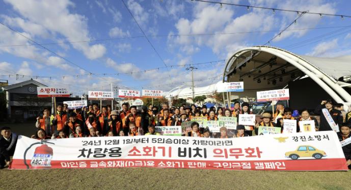 최기정 강진소방서장은 “11월은 불조심 강조의 달로 화재 증가에 대비해 생활 속 안전문화 확산을 위해 의용소방대와 함께 다양한 노력을 기울이겠다”라며 “특히 12월 1일부터 5인 이상의 모든 차량에 차량용 소화기 비치 의무화가 시행되어 적극 홍보하겠다”라고 말했다.
